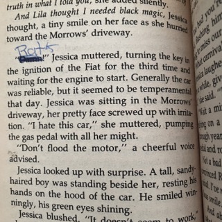 Jess leaves, but the Fiat won’t start. She exclaims, “Damn!” which is basically the F-word in Sweet Valley! Whoever originally owned my copy of this book was apparently offended by this so they scratched it out and wrote “Rat’s!” instead (the misplaced apostrophe is theirs, not mine). Excellent entertainment!