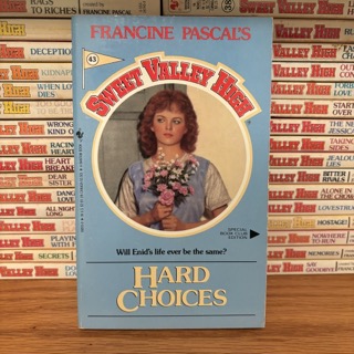There’s an announcement that Jackson Croft, Susan Stewart’s newly revealed father who’s a famous film director, is sponsoring a student documentary showcase. Liz decides to make a documentary about Sweet Valley (her go-to subject), with Jeffrey as cameraman and Jess as the host/star. Liz tells Enid about it and Enid seems excited to help. Apparently she’s been interested in television lately since her mom’s boyfriend works at the local TV station. Enid suggests they call their movie “This Is Sweet Valley.” What a riveting title… However, I used to think Sweet Valley was the most amazingly perfect place, so apparently all this messaging worked on my 12 year old self!