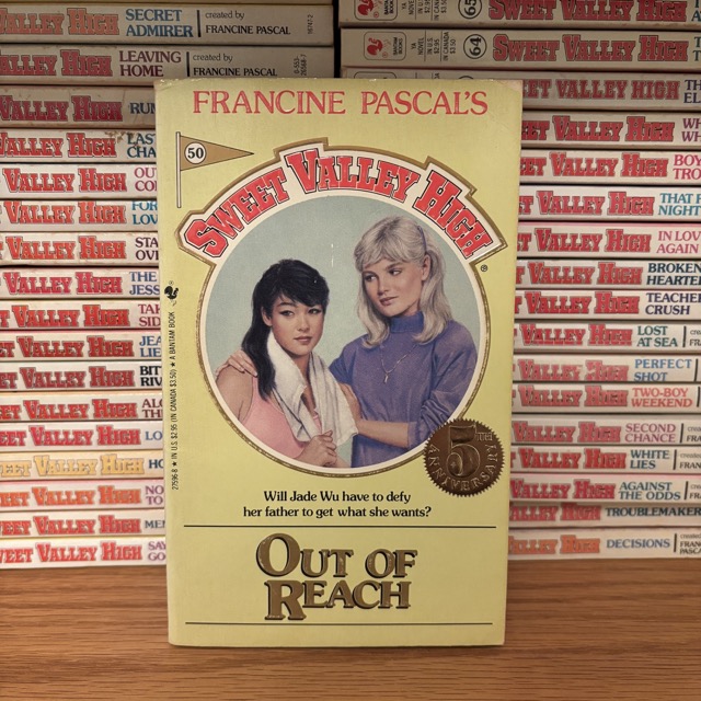 It’s the 5th anniversary of Sweet Valley High, according to the gold seal on the cover! I’m a little disappointed this wasn’t a better book for being such a milestone. You already know what to expect from Liz’s patented shoulder pat on the cover: she’s about to help a side character (Jade Wu, in this case) with a problem. The subplot is Wakefield-centric but mostly features (sigh) Mr. Wakefield.