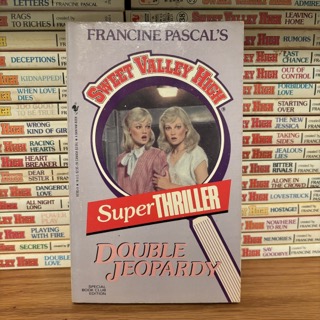 At this point in the Sweet Valley High series, they’d apparently decided that having Super Editions wasn’t enough. It was time to bring out Super Thrillers! I never loved the Super Thrillers as a kid. I think I always associated them with being scary, even though they’re not. They’re like Nancy Drew-lite, and I loved Nancy Drew as a kid. I should have loved these too! I read them, of course, but I didn’t reread them the way I reread the regular books in the series. Rereading it as an adult, I’m wondering if perhaps I didn’t love these as much because they don’t really feature a lot of the main characters from the regular series and weren’t as soapy in their drama.