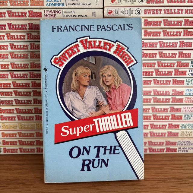 The second Sweet Valley High Super Thriller has arrived! This one is set in the same summer as Double Jeopardy, the first Super Thriller. I know this because the twins are still working as interns at the local newspaper, Steven’s friend Adam Maitland is still living with them for the summer, Jeffrey’s off at summer camp, and the plot of Double Jeopardy is recapped in here to give this book continuity. It is not, however, the same summer as the Super Editions were set in. Just so we’re clear on the (muddled as usual) timeline.